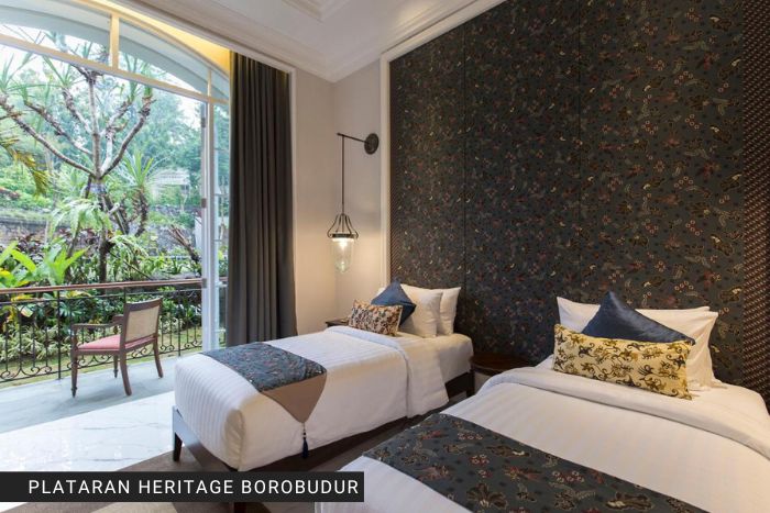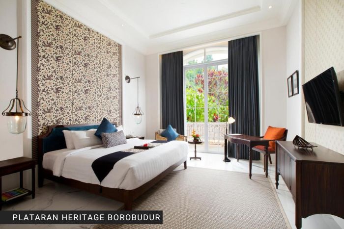 Caratterizzate da un’architettura e da interni con affascinanti elementi tradizionali giavanesi e coloniali, le camere e le suite di questo hotel a 4 stelle offrono comfort moderni per il vostro comfort, come aria condizionata, minibar e TV a schermo piatto. Decorate con colori neutri, alcune camere regalano una vista sulle montagne, mentre altre si affacciano sulla piscina. Tutte le camere del Plataran Heritage Borobudur Hotel sono dotate di bagno privato in marmo con doccia ed esclusivi set di cortesia. In alcune unità selezionate potrete usufruire di una vasca da bagno in marmo. Presso il ristorante Menoreh, dove viene servita ogni giorno anche la colazione a buffet, potrete gustare deliziosi piatti indonesiani, asiatici e internazionali preparati dallo chef residente. Gli ospiti possono anche rinfrescarsi al Langit Menoreh Bar & Lounge con bevande fresche e spuntini leggeri, mentre si godono la vista sulla piscina e sul paesaggio circostante. In alternativa, dirigiti allo Stupa, dove sui romantici tavoli all’aperto viene servito un intrigante viaggio culinario dell’arcipelago indonesiano.